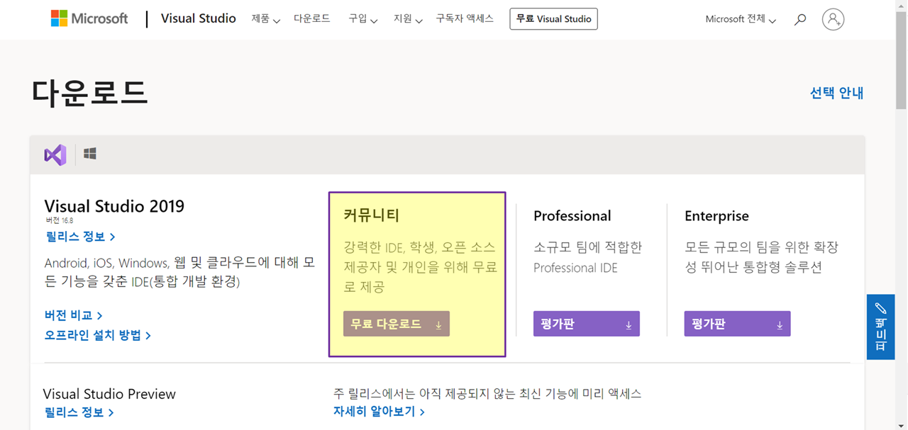 들어가면 바로 보이게 되는 커뮤니티-무료 다운로드를 클릭해주십시오.