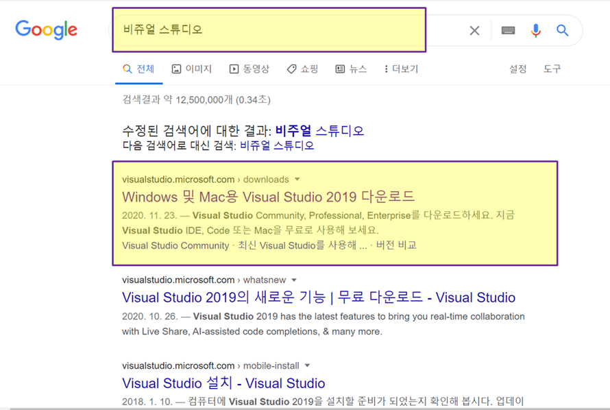 먼저, 구글에 Visual Studio를 검색해주세요.