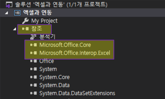 아래와 같이 참조에 마이크로 오피스가 나타났다면